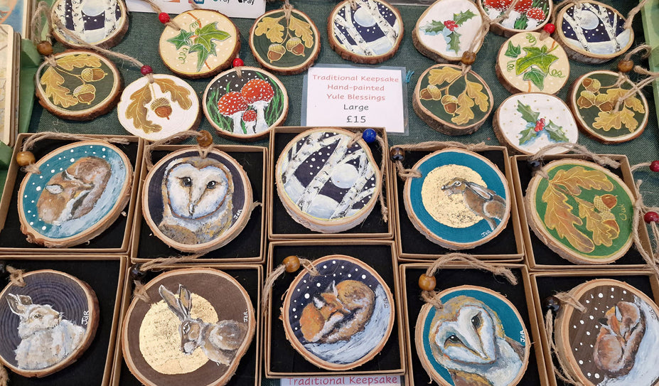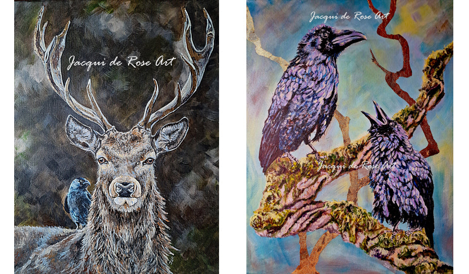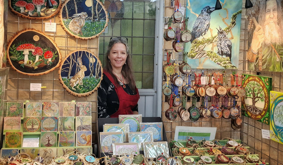 Jacqui de Rose is a nature artist based near The Peak District National Park in Derbyshire. As a self taught artist, her work is unique, preferring strong colours with a soft folksy feeling to her interpretations as an intuitive painter rather than following convention. Her original paintings, limited edition prints, hand-made greetings cards and wooden decorative items are influenced by her love of Mother Nature and the mythology and folklore of The British Isles and Northern Europe. She exhibits at over twenty events nationally each year including Green festivals, Pagan gatherings, Artisan fayres, Viking Festivals, Historical reenactments/ fayres, LARP conventions and quirky craft events throughout England and Wales, details of which can be found via the Events Tab. She specialises in Animal pieces. Please see the Commission tab for more details.
